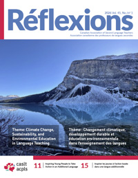 All active CASLT members receive Réflexions, our professional magazine, three times per year. Réflexions includes research articles on exemplary practices, articles on L+ teaching experiences, resource reviews, teaching tips, classroom activities, updates on our projects, and CASLT’s latest news. We encourage our members to submit articles for publication.